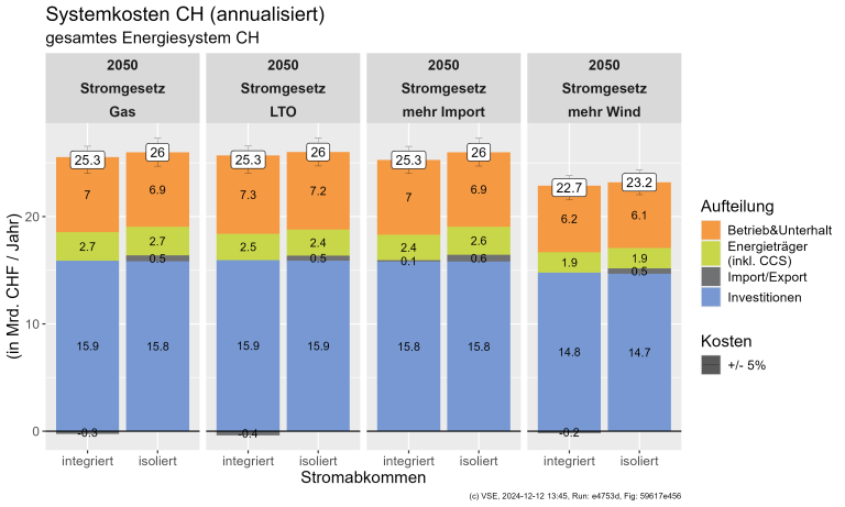 Systemkosten: Mit Stromabkommen wird das Gesamtsystem in allen Varianten günstiger