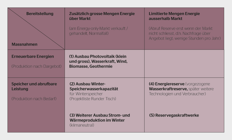 Übersicht: Massnahmen für mehr heimische Stromproduktion. (Quelle: VSE)