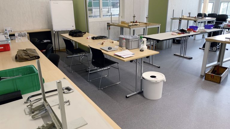 Eine spezielle Anspannung hat Rolf Studer bei den Lernenden aber nicht ausmachen können: «Das Stressniveau ist bei einer Abschlussprüfung sowieso schon hoch, und aufgrund der grosszügigen Räumlichkeiten in Kallnach waren wir nur minimal eingeschränkt.» So mussten beispielsweise die Experten ständig Handschuhe tragen. Nicht so die Kandidaten, weil das ihre Arbeit behindert hätte. Natürlich galt generell Maskenpflicht, und das Mittagessen wurde in mehreren Schichten in verschiedenen Räumen eingenommen. Und natürlich mussten die Messgeräte und Werkzeuge nach jedem Kandidaten desinfiziert werden.