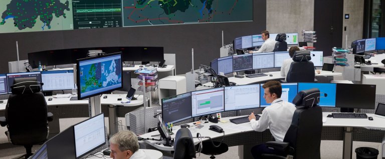 Wir haben einen 24-Stunden-Betrieb; jeweils ein Schichtleiter, ein Steuermann für das Netz und ein Mann für Netzregelung und Intraday-Fahrplanabwicklung. Der Steuermann schaltet die Leitungen und Kuppeltransformatoren und bietet Pikettleute auf, wenn es auf Leitungen oder in Schaltanlagen Störungen gibt. Mein Kollege von Netzregelung ist zuständig für den Netzregler, überwacht Frequenz und Spannung – und hat die Verantwortung für den korrekten Energieaustausch. Eine zweite Steuerstelle ist in Prilly, sie ist ebenfalls 24 Stunden besetzt.