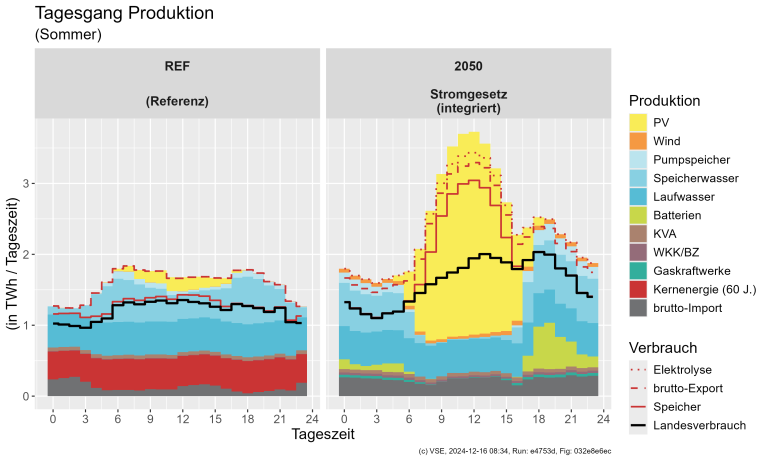 Die zukünftige Versorgungssicherheit hängt entscheidend von der Umsetzung des Stromgesetzes und dem Abschluss eines Stromabkommens ab. Das zeigt das Update der Studie «Energiezukunft 2050» des VSE. Im Winter braucht es zum Ausbau der Erneuerbaren, wie ihn das Stromgesetz vorschreibt, ergänzende Stromproduktion. Optimalerweise wird wesentlich mehr Windkraft zugebaut. Werden die Ausbauziele im Stromgesetz hingegen nicht erreicht, wird die Stromlücke im Winter deutlich grösser. Im Sommer braucht es Lösungen, um mit dem Stromüberschuss umzugehen.