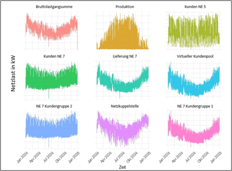 Ein möglicher erster Schritt besteht in der umfassenden Auswertung historischer Lastgangdaten, aufgeschlüsselt nach Netzebenen und Kundensegmenten. Diese Daten können als Ausgangspunkt für die konzeptionelle Entwicklung dynamischer oder leistungsabhängiger Tarifierungsmodelle dienen. Über einen Zeitraum von beispielsweise einem Jahr hinweg lassen sich viertelstündlich aufgezeichnete Lastgänge analysieren, um zentrale Fragestellungen zu klären, etwa im Hinblick auf strukturelle Muster, Lastspitzen oder potenzielle Ineffizienzen:
