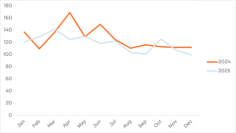 Zudem hat Swissgrid in einer Auswertung festgehalten, dass zwar die Anzahl der Extremevents auf Viertelstundenbasis im Jahr 2025 im Vergleich zu 2024 abgenommen habe, die durchschnittliche Unausgeglichenheit der Schweizer Regelzone pro Monat aber trotzdem auf einem hohen Niveau verbleibe (siehe Abbildung 5). [6] Ein entsprechender Handlungsbedarf ist daher auch aus Sicht von Swissgrid weiterhin gegeben.