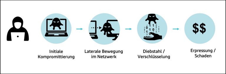 Hat ein Angreifer – egal ob durch Phishing, ungepatchte Systeme, Zero-Day-Sicherheitslücken oder mit dem Brecheisen an der Trafostation – Zutritt zum Netzwerk erlangt, verschafft er sich als Erstes einen Überblick. Auf der Suche nach ungeschützten Geräten und attraktiven Zielen bewegt er sich vorsichtig und unbemerkt im Netzwerk. Systembetreiber benötigen durchschnittlich 280 Tage, um eine Lücke zu lokalisieren und zu schliessen. Das heisst, dass sich ein Angreifer zu diesem Zeitpunkt schon seit über sechs Monaten im Netzwerk aufhalten könnte. Er hat Zeit, kann den Angriff in Ruhe vorbereiten und dabei sehr vorsichtig vorgehen, sodass seine Kommunikation nur schwer durch Systeme detektiert werden kann.