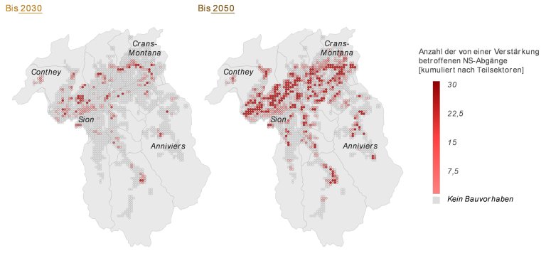 - Die geografischen Gebiete mit den möglicherweise grössten Einschränkungen für die Infrastruktur und die Anzahl der entsprechenden Bauvorhaben;