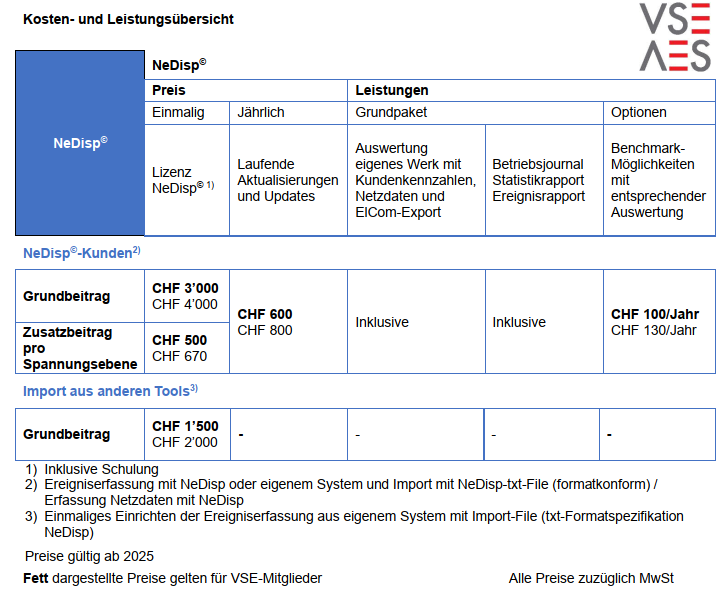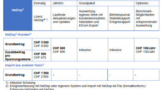 - Das NeDisp© -Export-File für die Weiterleitung der Daten an die ElCom: NeDisp© beinhaltet eine klar definierte Exportschnittstelle, die es erlaubt, die von ElCom geforderten Daten per Knopfdruck weiterzuleiten. Die Übermittlung der Daten kann nur durch den VNB selbst erfolgen.