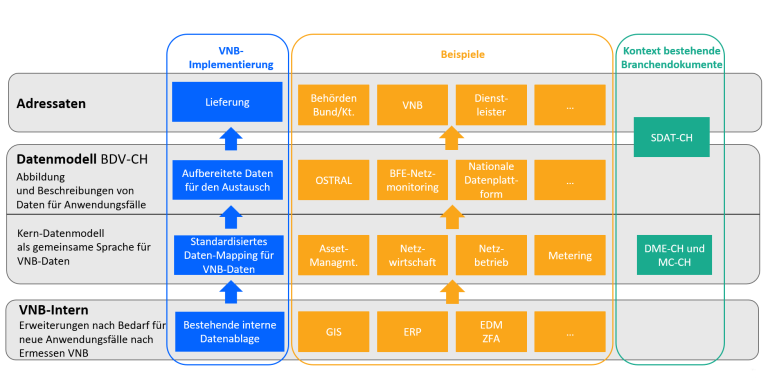 Durch das Datenmodell wird sichergestellt, dass Daten einheitlich definiert, strukturiert und ausgetauscht werden können. Dies erhöht die Interoperabilität, reduziert den Aufwand für individuelle Anpassungen und erleichtert die digitale Zusammenarbeit in der Schweizer Verteilnetzbranche.