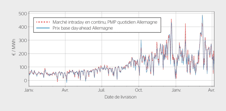 En théorie, il y a autant de prix par session de négoce qu’il y a de transactions. Mais si l’on compare les courbes de prix day-ahead et intraday pour, par exemple, l’Allemagne, on constate que l’abandon du pay-as-clear ne mène pas forcément à des prix plus bas. Pourquoi? Cela s’explique par le fait qu’un changement de procédure de formation des prix entraîne aussi une modification du comportement d’offre. Alors que la procédure pay-as-clear entraîne, pour une installation avec des coûts marginaux bas, une offre de liquidation du marché, dans la procédure pay-as-bid, le prix serait dépendant de l’offre concrète. L’exploitant d’installation continuera toutefois de s’employer à obtenir le meilleur prix. Il essaiera donc d’évaluer le volume de l’offre et de la demande et de prédire la disposition à payer, et aura tendance à se positionner sur le marché avec des offres plus élevées. L’activation finale de capacités de production ne se base plus, elle non plus, sur l’efficacité économique, mais sur la capacité des participants au marché à anticiper le prix du marché. La marge d’erreur de ces prédictions et la tendance de fond à se positionner sur le marché avec des prix plus élevés peuvent ainsi mener à une formation moins efficace du prix.