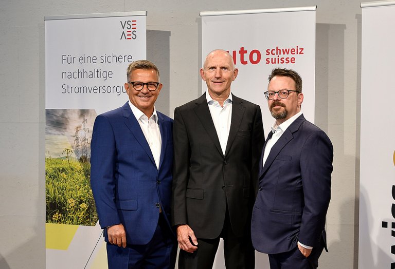 La coopération des trois associations n’est pas un hasard, comme l’ont expliqué le directeur de l’AES Michael Frank, le directeur de Swiss eMobility Krispin Romang et le directeur d’auto-suisse Andreas Burgener en introduction. En effet, les trois chefs d’association ont tout d’abord revendiqué, chacun à leur tour, détenir LA compétence pour mener la mise en œuvre de l’électrification des transports, qui fait partie des tâches de leurs associations respectives. «Nous sommes prédestinés, car nous savons faire de l’électromobilité», tel est le message qui a donc résonné trois fois de suite dans la salle. Toutefois, ils ont tous trois assez rapidement reconnu que les connaissances et le savoir-faire des deux autres associations pouvaient aussi faire avancer l’électrification. Et le thème des «interfaces» a fini de convaincre Michael Frank, Krispin Romang et Andreas Burgener qu’un tel projet serait beaucoup plus facilement, précisément et – surtout – rapidement réalisable s’ils unissaient leurs forces.