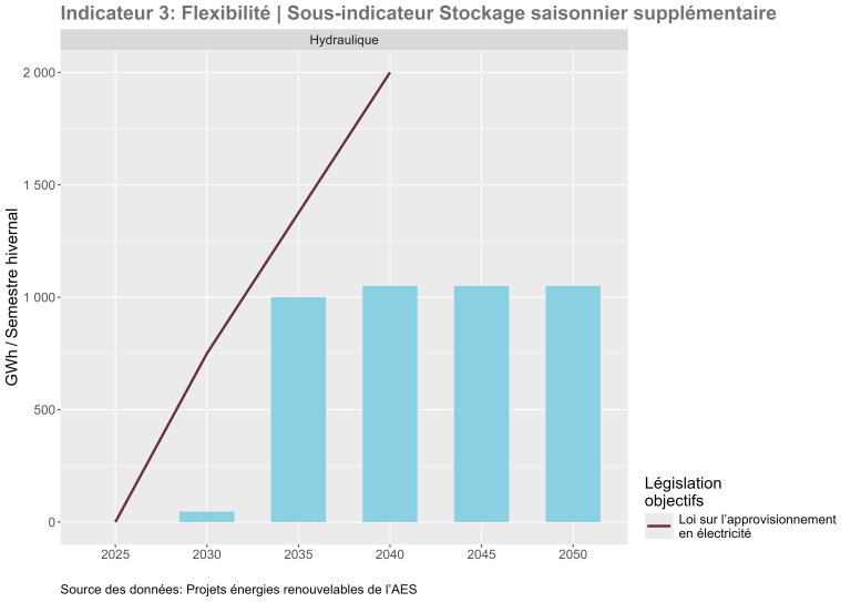 - Indicateur 3 - Flexibilité: 52 points; le développement du stockage saisonnier supplémentaire reste en deçà des objectifs.
