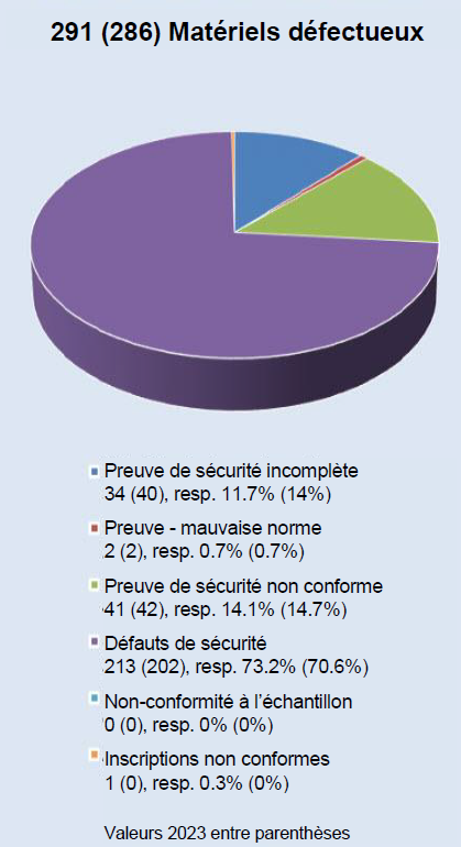 Surveillance du marché 2024 (diagrammes du matériel contrôlé, matériel défectueux)