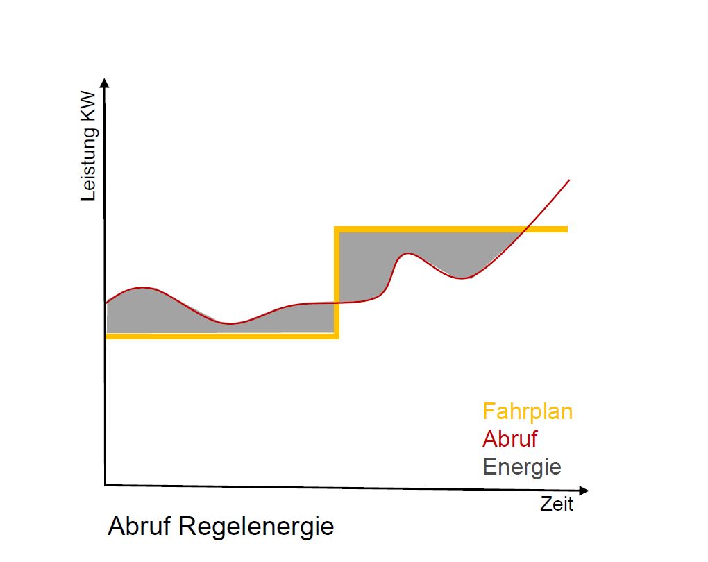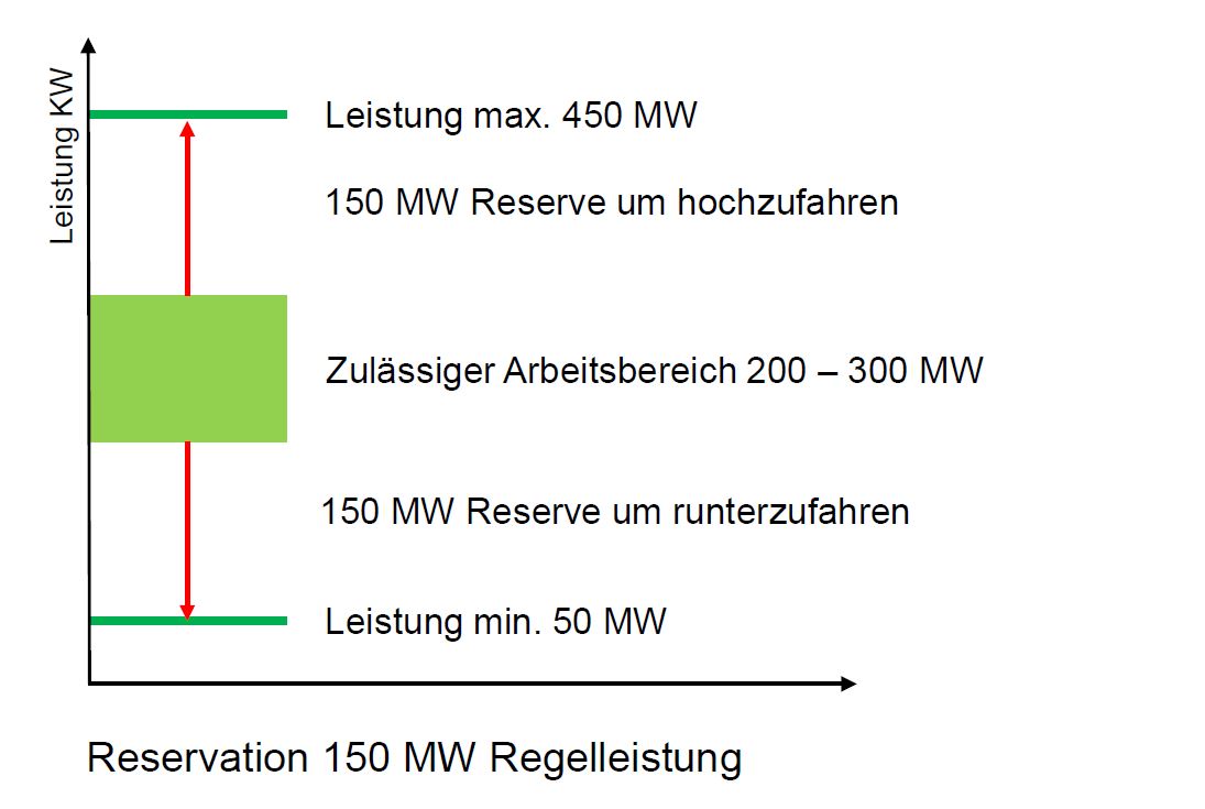 Pour tous ces réglages, on fait la distinction entre la puissance de réglage et l’énergie de réglage. La puissance de réglage désigne la capacité qu’une centrale garde en réserve et met à disposition en cas de recours. Si une centrale qui peut produire au minimum 50 MW (analogue au fonctionnement à vide d’un moteur automobile) et au maximum 450 MW a vendu +/- 150 MW de puissance de réglage secondaire, elle doit produire entre 200 MW et 300 MW d’énergie sur toute la période (p. ex. une semaine ou un mois) pour pouvoir monter ou descendre à 150 MW à tout moment. L’énergie effectivement utilisée par Swissgrid s’appelle l’énergie de réglage. La réserve de puissance de réglage et le recours à l’énergie de réglage sont rémunérés par Swissgrid et facturés aux consommateurs finaux via les tarifs d’utilisation du réseau de Swissgrid et des gestionnaires de réseau de distribution.