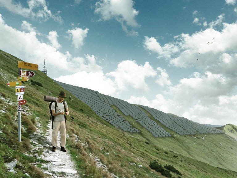 Uno strumento che si è rivelato molto utile e di cui si è tenuta grande considerazione fin dall’inizio è la lista di criteri della Fondazione svizzera per la tutela del paesaggio. Tra i tanti aspetti suggeriti e integrati nel progetto si annoverano: evitare fondamenta in beton per facilitare lo smantellamento, rispettare gli elementi morfologici, evitare l’uso di elicotteri, scelta di un luogo già antropizzato e con infrastrutture esistenti, disposizione uniforme, evitare nuove linee elettriche aeree, evitare che l’impianto impedisca la vista del panorama dal sentiero sulla cresta, coprire poco terreno e mantenere altezze e distanze minime tra i pannelli per permettere il normale sviluppo della vegetazione e il pascolo del bestiame e della selvaggina. Il parco, inoltre, non è visibile dal fondovalle ma solo da centri abitati ad oltre 7 km di distanza.